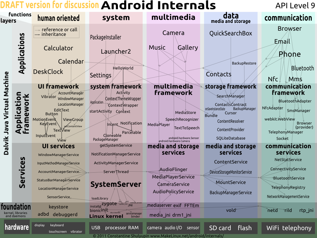 1001...1052 - Devices1053 - Zygote, 10000+ - AppsBinder: domain-socket analog for IPC